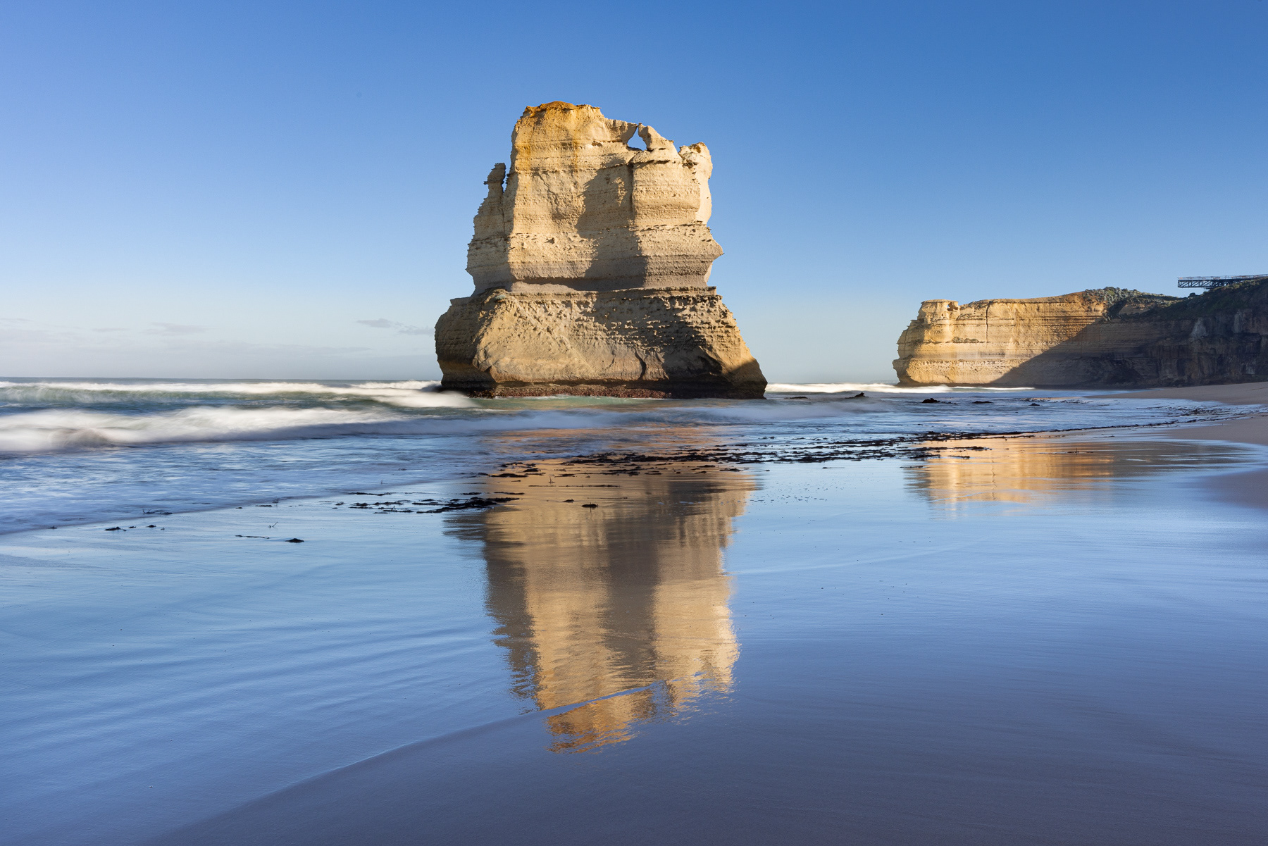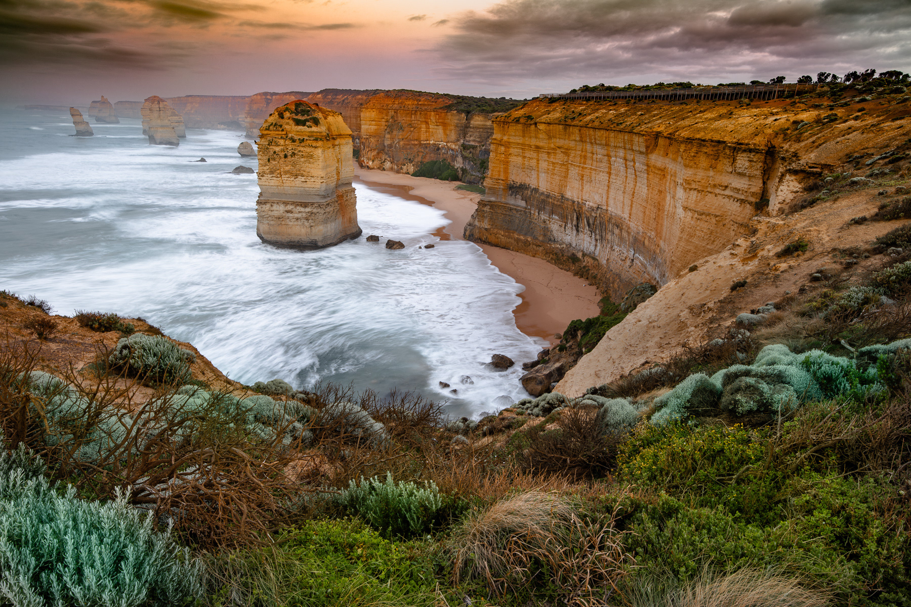 This is the classic view, showing the most famous and iconic view of the Twelve Apostles to the west, where you can see most of the remaining sandstone stacks.