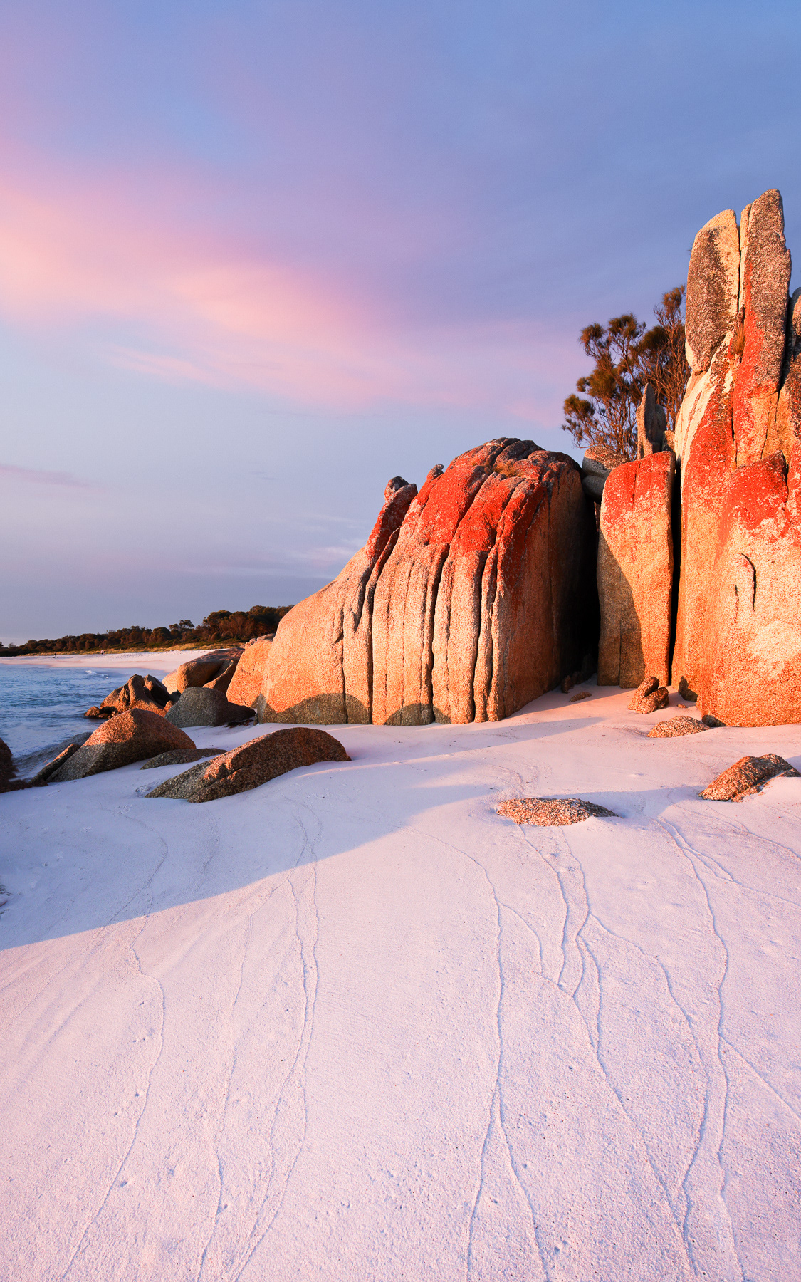 Cosy Corner is a free camping area located in the Bay of Fires region of northeast Tasmania, offering private spots and a picturesque coastal experience. While it is a basic, self-sufficient camping location, it provides a beautiful, natural setting to enjoy the area, very popular in the summer. Cosy Corner is part of the Bay of Fires Conservation Area on the far northeast coast of Tasmania. The Bay of Fires stretches fifty kilometers along the northeast coast of Tasmania, featuring white sandy beaches, pristine blue waters, and large granite boulders covered in striking orange lichen.