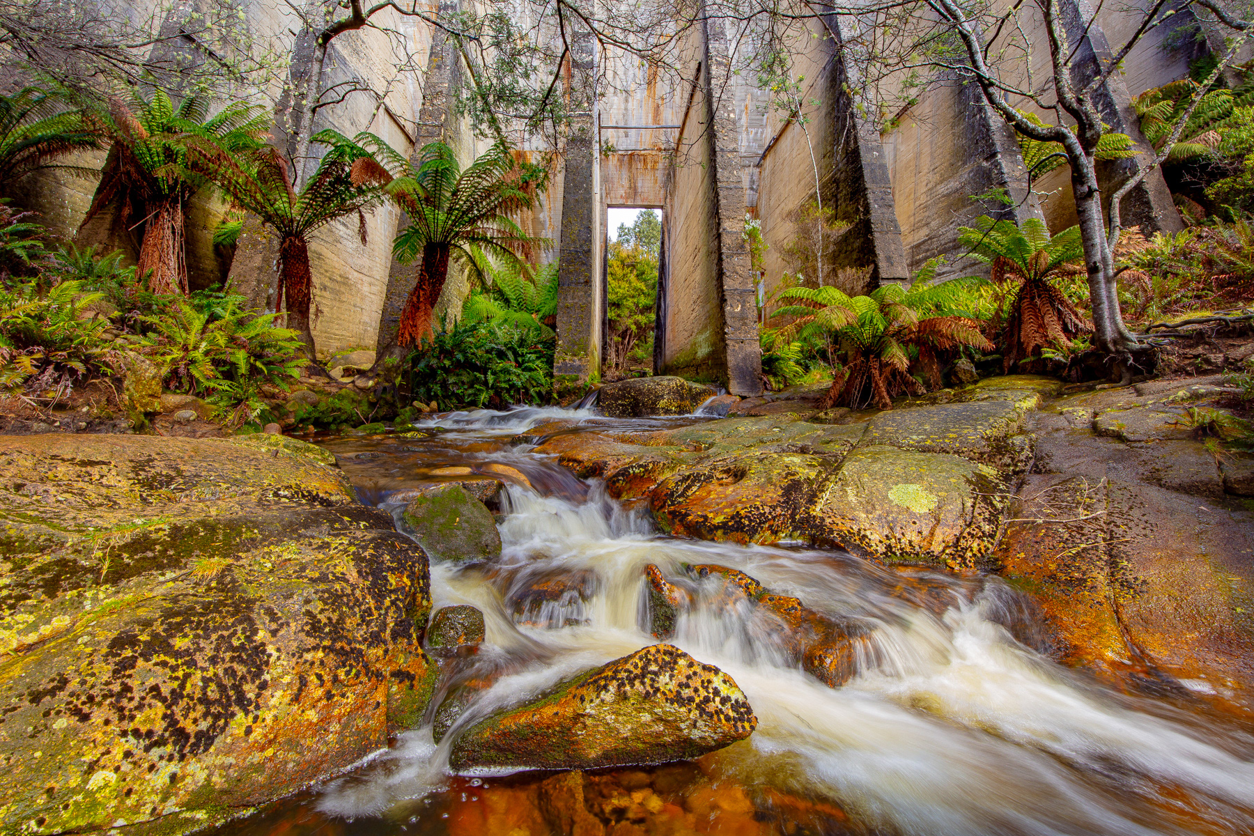 The Mount Paris Dam, originally called the Morning Star Dam, was built in 1936 in northeast Tasmania to supply water for the Mt Paris Tin Mine. Constructed largely by hand during the Great Depression, with more than seventy men employed on its construction, it is the only surviving slab and buttress dam of its kind in Tasmania. After the mine closed in 1970, the dam was emptied, and in 1985, a large hole was blasted through its wall to allow the Cascade River to flow naturally again.